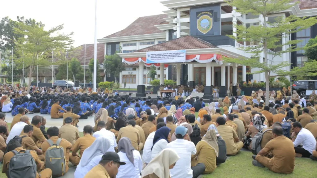 Weda, 30 September 2025 – Pemerintah Kabupaten Halmahera Tengah menggelar acara penandatanganan kontrak kerja dan penyerahan Surat Keputusan Pegawai Pemerintah dengan Perjanjian Kerja (PPPK) Tahap II Formasi Tahun 2024. Kegiatan ini berlangsung di halaman Kantor Bupati Halmahera Tengah, Selasa (30/9/2025).