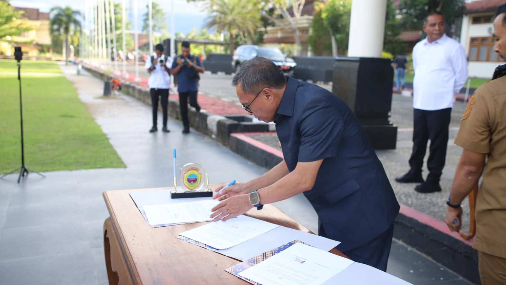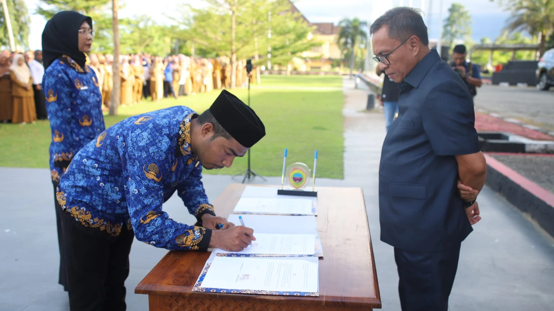 Weda, 30 September 2025 – Pemerintah Kabupaten Halmahera Tengah menggelar acara penandatanganan kontrak kerja dan penyerahan Surat Keputusan Pegawai Pemerintah dengan Perjanjian Kerja (PPPK) Tahap II Formasi Tahun 2024. Kegiatan ini berlangsung di halaman Kantor Bupati Halmahera Tengah, Selasa (30/9/2025).