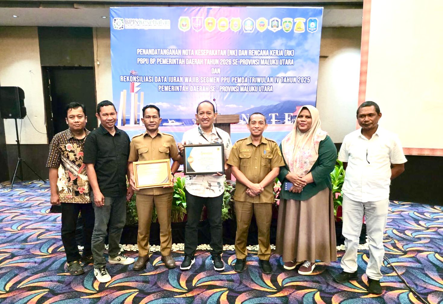 Ternate — Pemerintah Daerah Kabupaten Halmahera Tengah kembali mencatatkan prestasi dengan menerima penghargaan dan apresiasi dari BPJS Kesehatan dalam kegiatan Penandatanganan Naskah Nota Kesepakatan (NK) dan Rencana Kerja (RK) antara Pemerintah Daerah Provinsi/Kabupaten/Kota dengan BPJS Kesehatan Kedeputian Wilayah X, yang