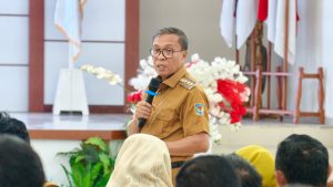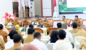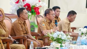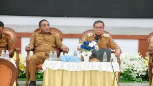 WEDA — Bupati Halmahera Tengah didampingi Wakil Bupati, Plt Kepala Dinas Pendidikan serta para Kepala Bidang lingkup Dinas Pendidikan memberikan arahan dalam kegiatan Audiensi dan Evaluasi Kinerja Kepala Sekolah Kabupaten Halmahera Tengah Tahun 2026, yang berlangsung di Aula Hi. Salahuddin, Kantor Bupati Halmahera Tengah, Weda, Senin (12/01/2026).