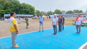 Bupati juga meninjau secara langsung kesiapan teknis di lapangan, termasuk formasi pasukan, tata upacara, serta urutan penyerahan bendera kebesaran daerah (Pataka Kabupaten Halmahera Tengah).