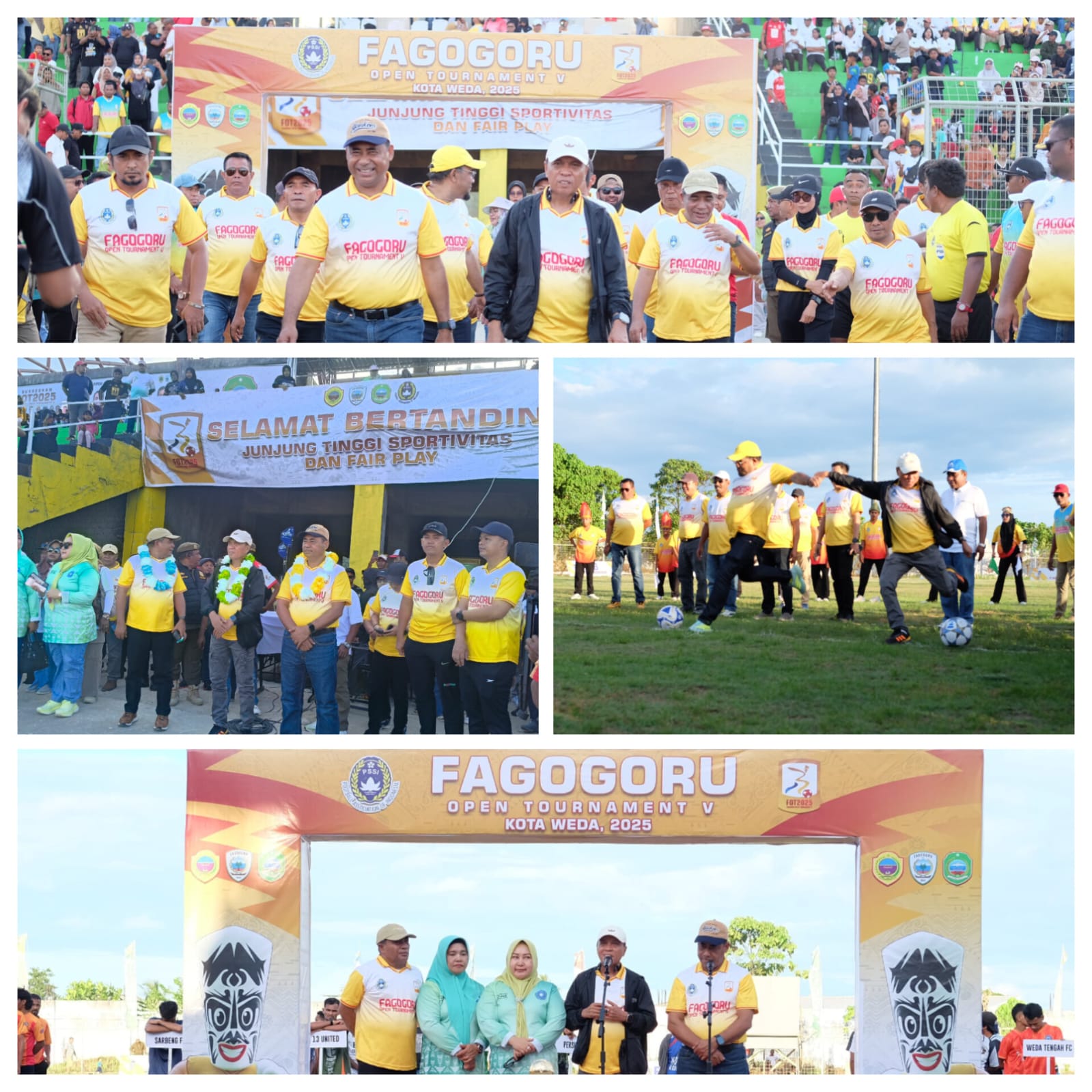 Weda, 18 Oktober 2025 – Ribuan masyarakat Fagogoru tumpah ruah di GOR Fagogoru Kota Weda untuk menyaksikan pembukaan Fagogoru Open Tournament (FOT) V Tahun 2025. Acara berlangsung meriah, diawali dengan tarian kolosal dari Sanggar Kabata asuhan Arman Alting, dilanjutkan dengan