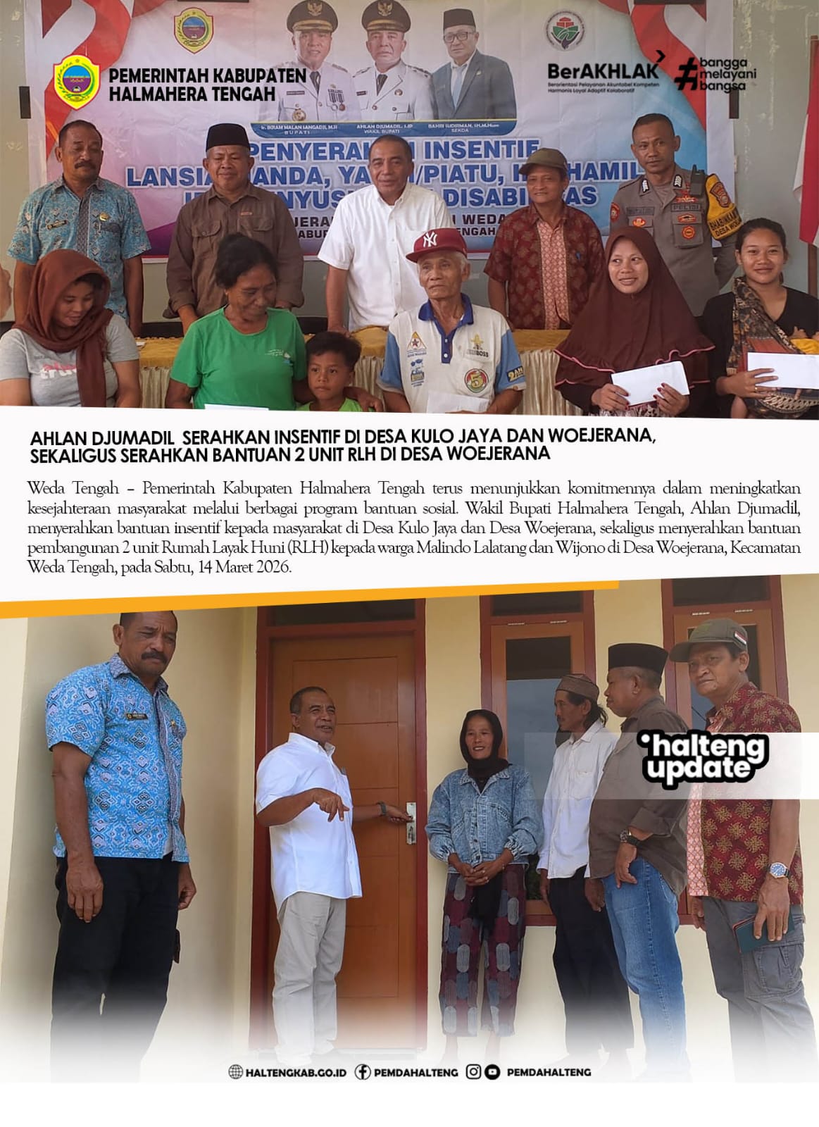 WAKIL BUPATI HALTENG SERAHKAN INSENTIF DI DESA KULO JAYA DAN WOEJERANA, SEKALIGUS SERAHKAN BANTUAN 2 UNIT RLH DI DESA WOEJERANA
