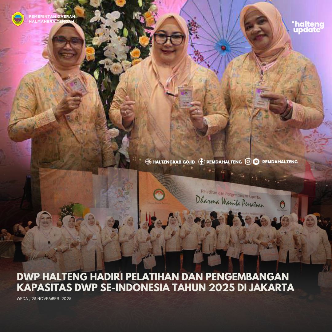 Dharma Wanita Persatuan (DWP) Kabupaten Halmahera Tengah turut ambil bagian dalam kegiatan Pelatihan dan Pengembangan Kapasitas DWP Se-Indonesia Tahun 2025 yang diselenggarakan di Birawa Ballroom Hotel Bidakara, Jakarta, pada Rabu, 19 November 2025.