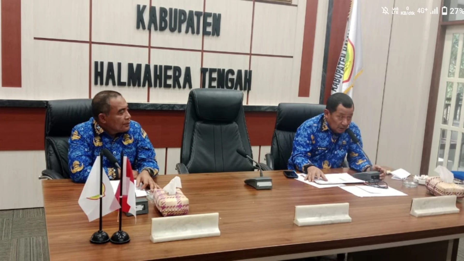 Weda, 1 Oktober 2025 – Pemerintah Provinsi Maluku Utara menggelar evaluasi Program Pemeriksaan Kesehatan Gratis (PKG) secara virtual melalui Zoom Meeting, Rabu (1/10/2025). Pertemuan yang dipusatkan di Ruang Rapat Bupati Halmahera Tengah ini diikuti Wakil Bupati Halmahera Tengah, Sekretaris Daerah Halteng, Kepala Dinas PMD, Plt. Kadis Kesehatan, dan Kabid Kesehatan Masyarakat Dinas Kesehatan Halteng.