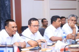Pj. Bupati Halteng Ir.Ikram M Sangadji. M.Si menerima kunjungan Kunjungan kerja Pemerintah Kabupaten Halmahera Timur, dengan agenda Rapat Koordinasi (Rakor) tentang peningkatan Aksesibilitas antar wilayah Kabupaten Halmahera Timur dan Halmahera Tengah pembangunan jalan Ruas Maba – Sagea dan Ruas ekor – Trans kobe.”weda.14/2/2023.