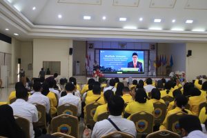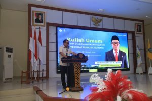 Sekretaris Daerah Kabupaten Halmahera Tengah, Bahri Sudirman, S.H., M.Hum., dalam sambutannya sekaligus memberikan kuliah umum bertajuk: “Peran Pemerintah Daerah dalam Meningkatkan Akses dan Kualitas Pendidikan Tinggi di Kabupaten Halmahera Tengah.”