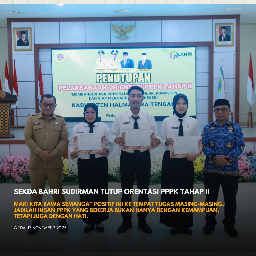 Pemerintah Kabupaten Halmahera Tengah secara resmi melaksanakan Penutupan Orientasi Pegawai Pemerintah dengan Perjanjian Kerja (PPPK) Tahap II Formasi Tahun 2024, yang bertempat di Aula Salahuddin Bin Talabudin, Senin 17 November 2025.