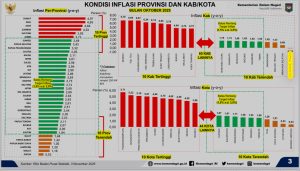 Wakil Menteri Dalam Negeri Akhmad Wiyagus menyampaikan bahwa inflasi nasional secara year-on-year (YoY) pada periode yang sama berada di angka 2,86 persen. Meskipun masih dalam rentang target nasional 1,5–3,5 persen, Wiyagus mengingatkan pemerintah daerah agar mewaspadai potensi kenaikan harga emas perhiasan dan sejumlah komoditas pangan yang berpotensi memberikan tekanan inflasi ke depan.
