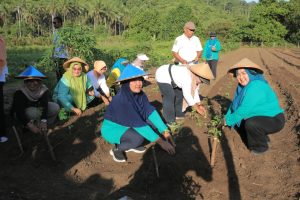 Kegiatan ini berlangsung di Kebun PKK Kabupaten Halmahera Tengah sebagai bagian dari upaya mendukung ketahanan pangan dan pemberdayaan perempuan melalui sektor pertanian.