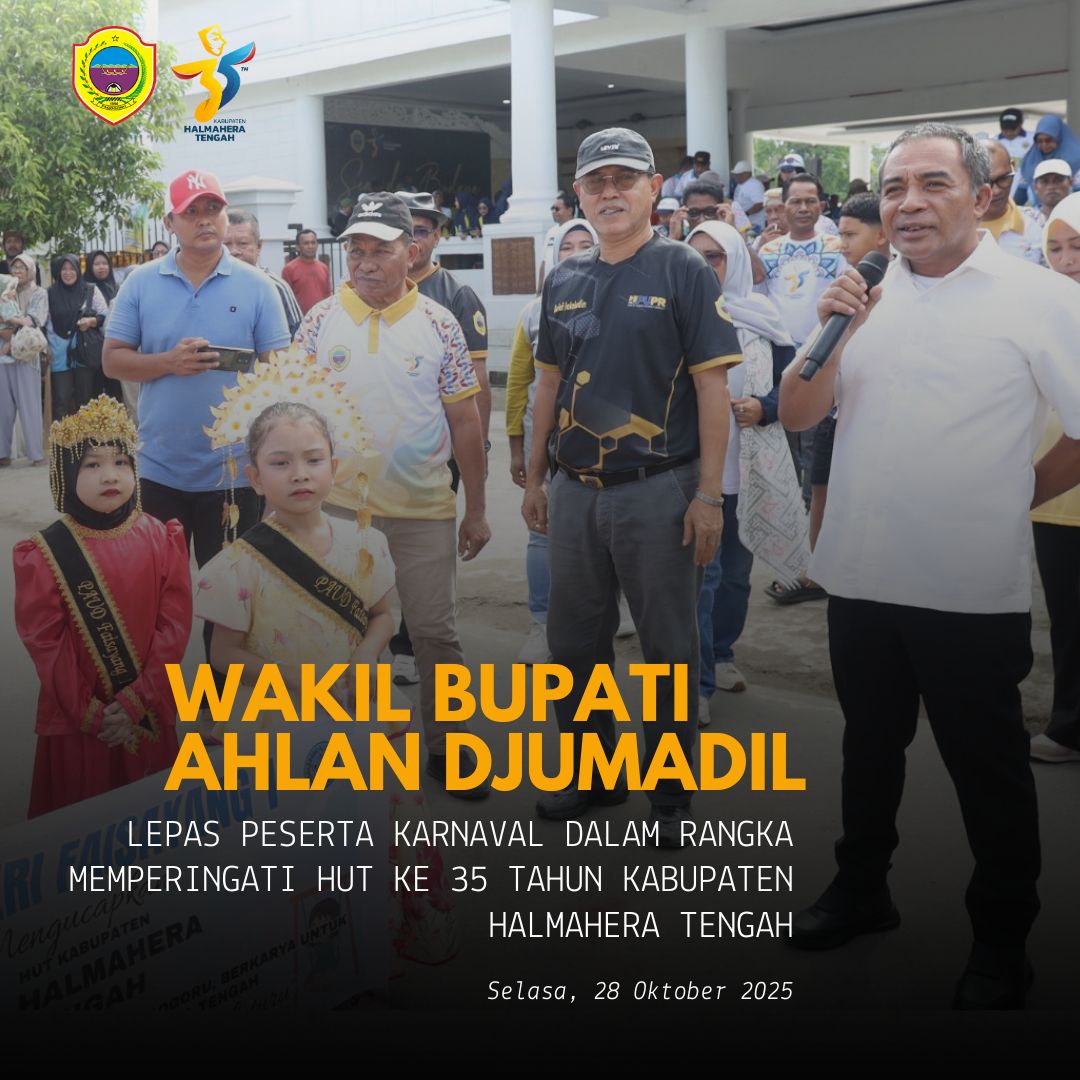 Dalam rangka memeriahkan Hari Ulang Tahun (HUT) Kabupaten Halmahera Tengah ke-35 tahun 2025, Wakil Bupati Halmahera Tengah, Ahlan Djumadil, melepas lomba/pawai karnaval tingkat TK, PAUD, dan SD se-Kecamatan Weda. Acara pelepasan berlangsung di Pendopo Falcilno Weda, Rabu (29/10/2025).