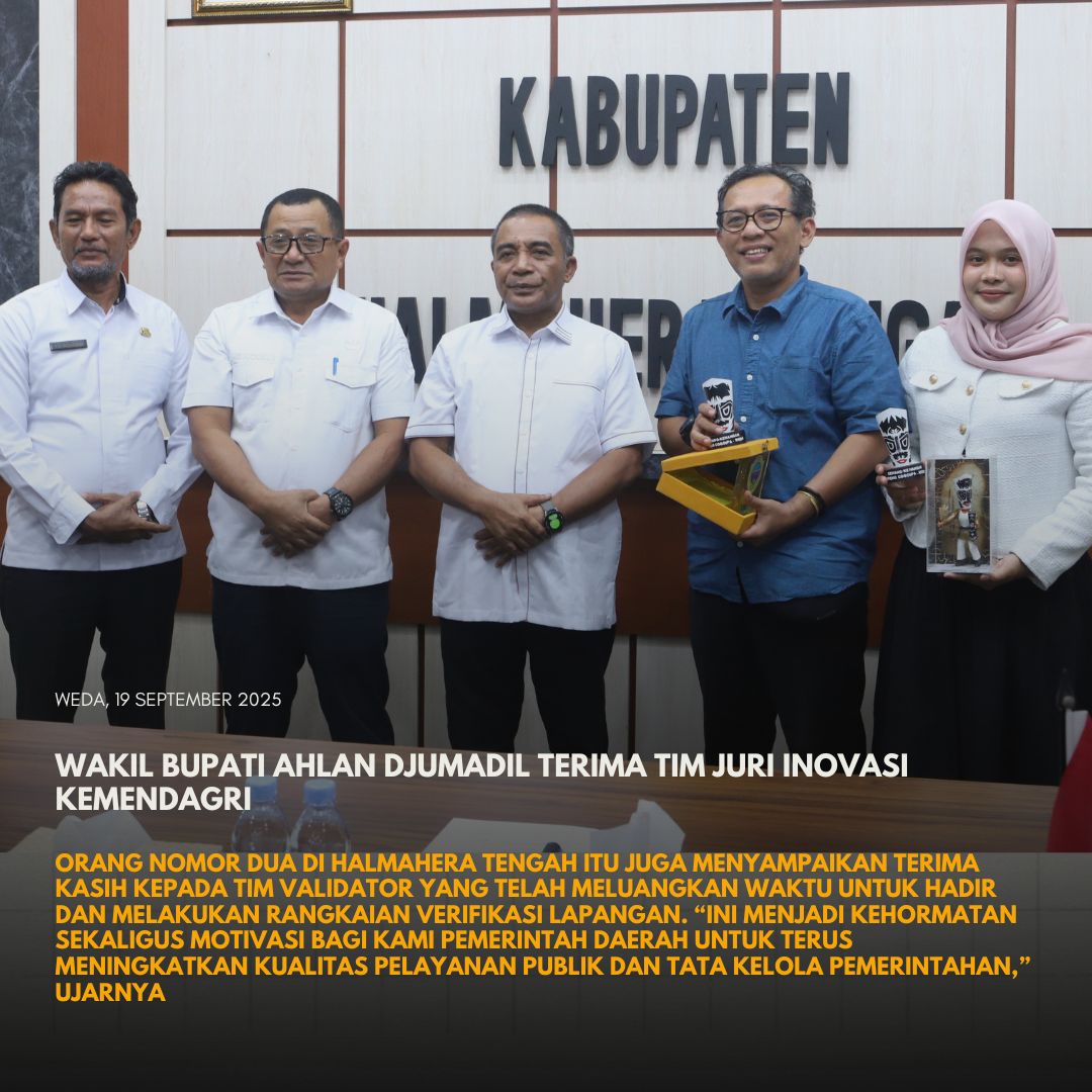 Wabup menegaskan bahwa peningkatan inovasi daerah merupakan komitmen pemerintah dalam menghadirkan pelayanan publik yang cepat, tepat, dan bermanfaat bagi masyarakat. Pemerintah Kabupaten Halmahera Tengah terus berupaya melakukan terobosan melalui pemanfaatan teknologi informasi, penyederhanaan layanan, hingga inovasi yang lahir dari kreativitas perangkat daerah dan masyarakat.