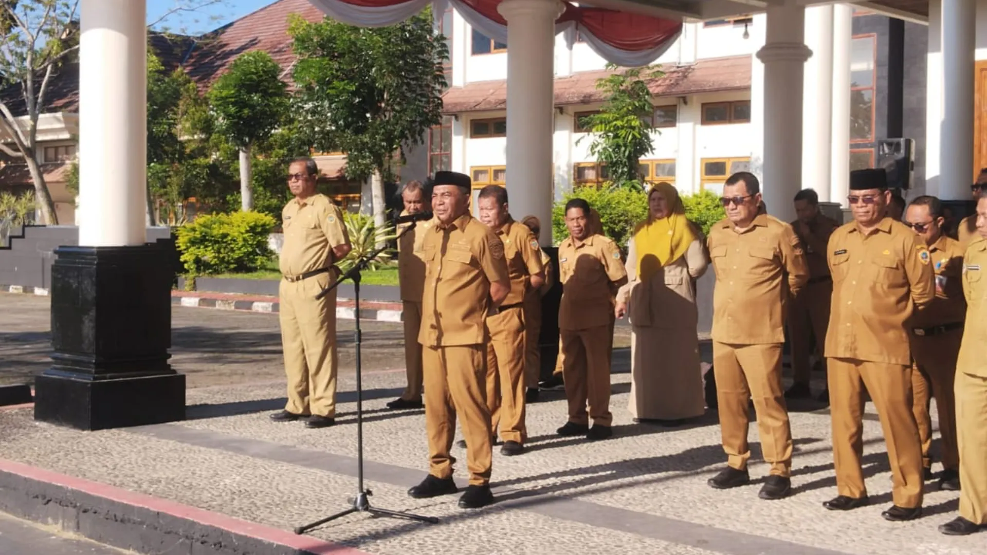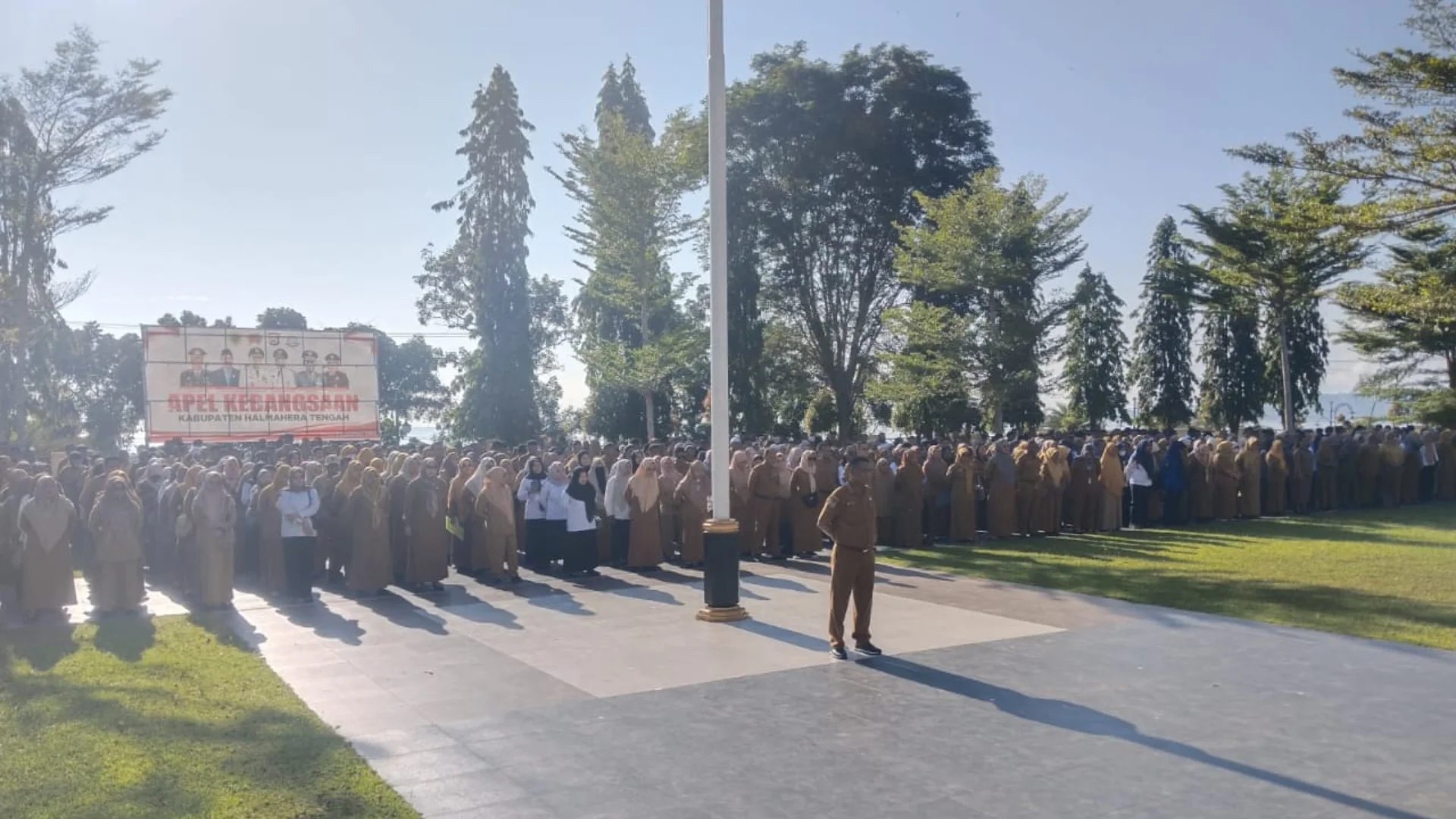 Weda, 29 September 2025 – Pemerintah Kabupaten Halmahera Tengah melaksanakan Apel Pagi di halaman Kantor Bupati, Senin (29/9/2025). Apel dipimpin langsung oleh Wakil Bupati Halmahera Tengah dan dihadiri oleh Sekretaris Daerah, para Staf Ahli, serta seluruh pimpinan Organisasi Perangkat Daerah (OPD) beserta jajaran ASN lingkup Pemda Halteng.